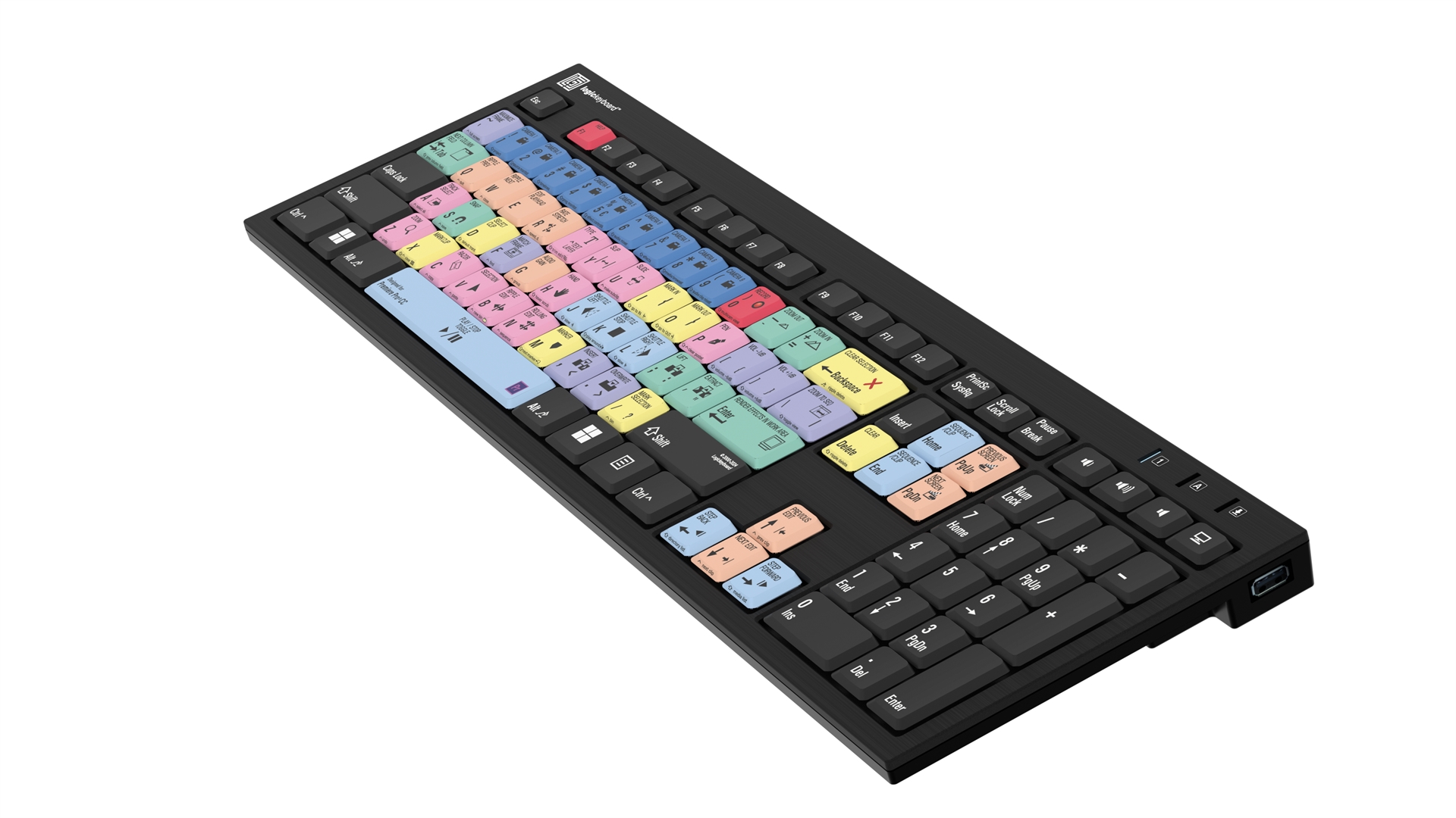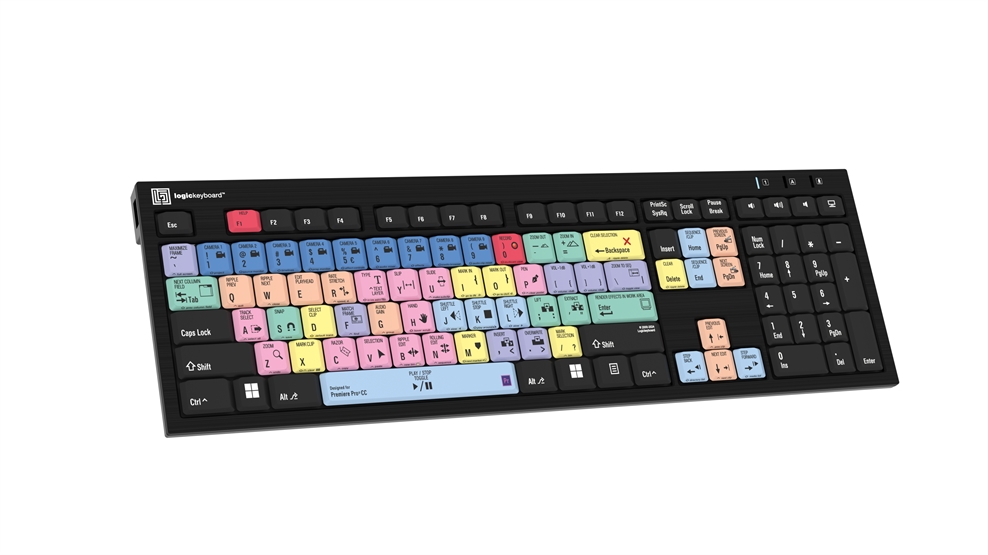 a Logickeyboard NERO Slimline keyboard for Windows with US English Adobe Premiere Pro CC shortcut keys