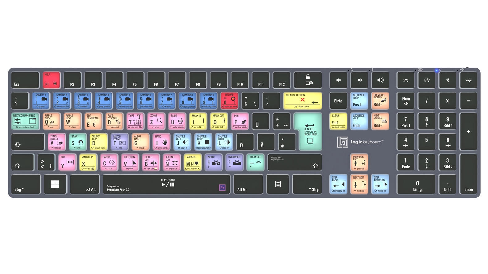Logickeyboard Adobe Premiere Pro CC TITAN Wireless Backlit Keyboard - Windows DE German