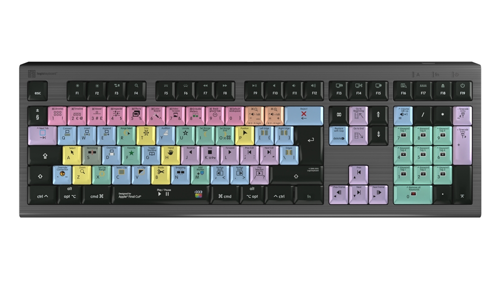 This Logickeyboard is your number one choice when editing in Final Cut Pro. The shortcut commands labeled on the keys, and their color-coded definitions makes you a Master of controlling Final Cut Pro in no time. The Logickeyboard is ideal for post-production facilities, professional editing houses, and everyone else working diligently with Final Cut Pro.