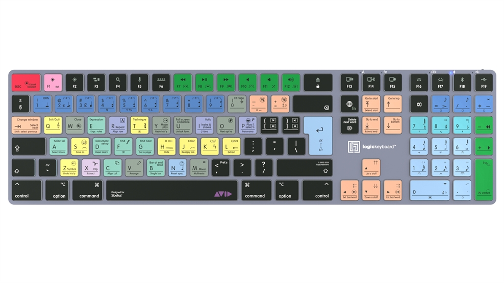 This Logickeyboard is your number one choice when editing in Avid Sibelius. The shortcut commands labeled on the keys, and their color-coded definitions makes you a Master of controlling Avid Sibelius in no time. The Logickeyboard is ideal for music producers, audio editors, and everyone else working diligently with Avid Sibelius.