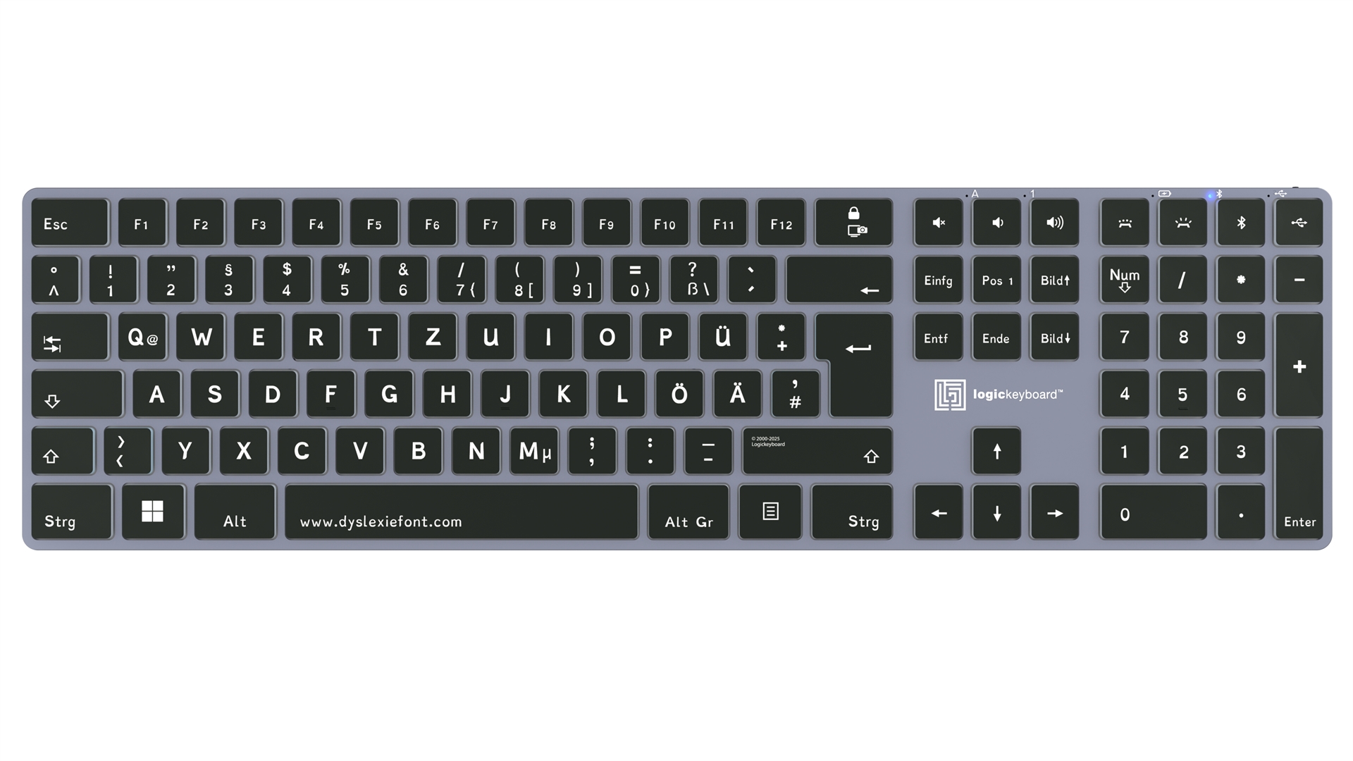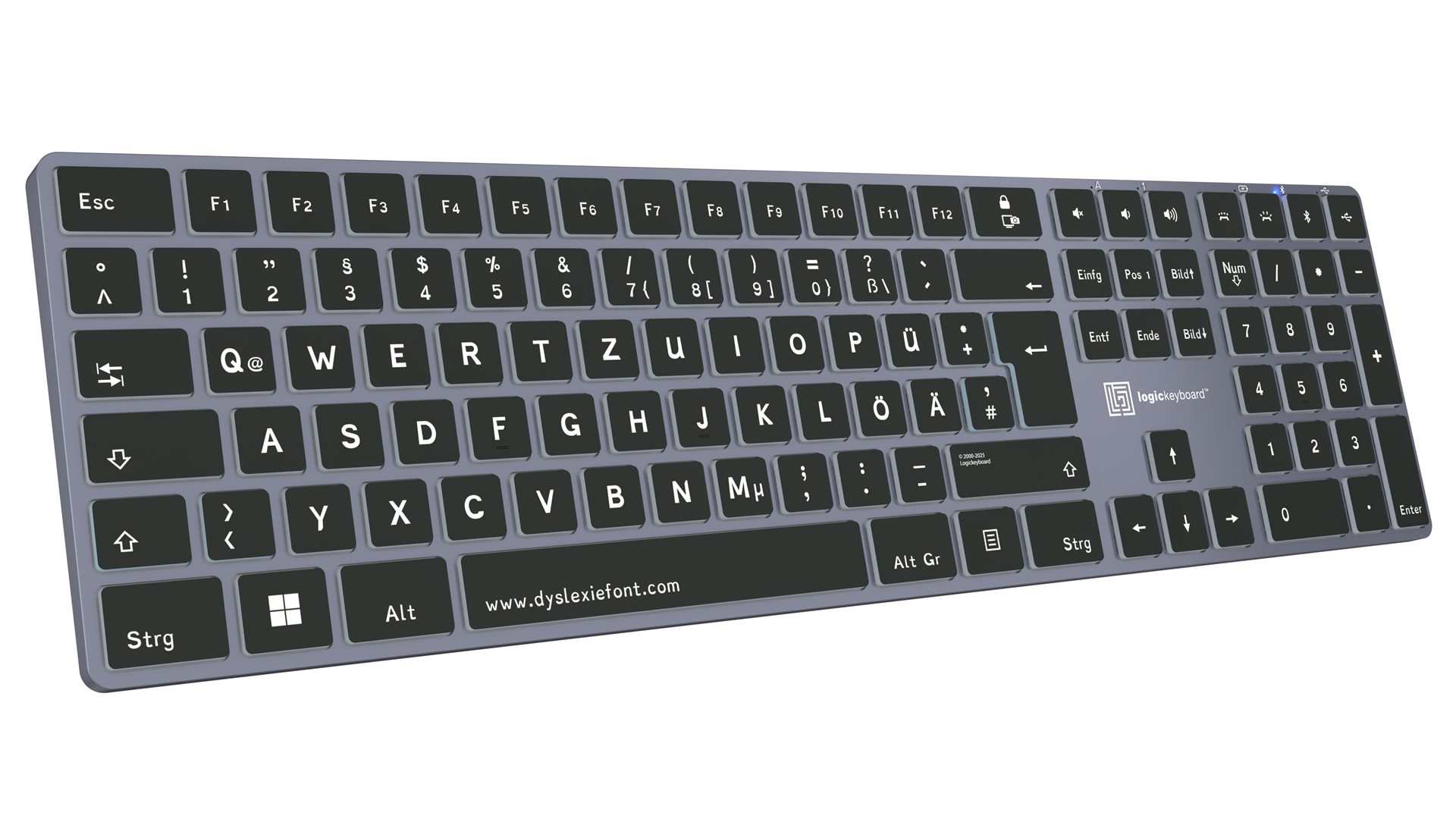 Wireless & Backlit Logickeyboard designed with Dyslexie font
