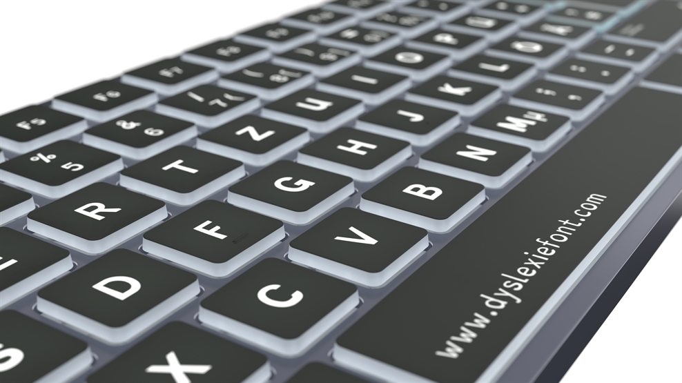 The keyboard font is developed in cooperation with www.dyslexiefont.com. Dyslexie Font incorporates subtle yet impactful modifications to traditional letterforms. Each character is meticulously crafted, featuring heavier bottoms, enlarged openings, and increased spacing. These design elements contribute to a more distinct visual contrast between letters, ultimately reducing the risk of confusion for dyslexic readers.