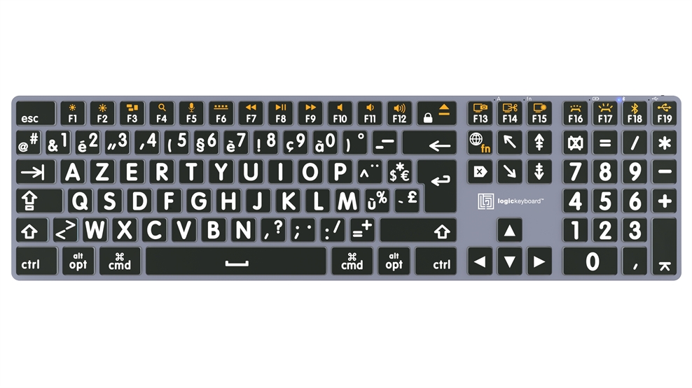 Logickeyboard Large Print - White on Black TITAN Slimline Keyboard – Mac BE Belgian