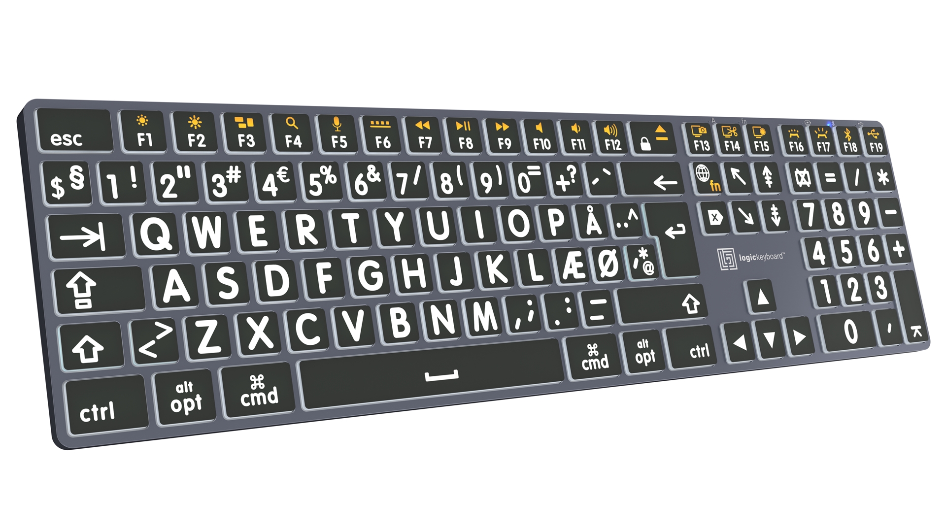 Logickeyboard Large Print - White on Black TITAN Slimline Keyboard – Mac DK Danish