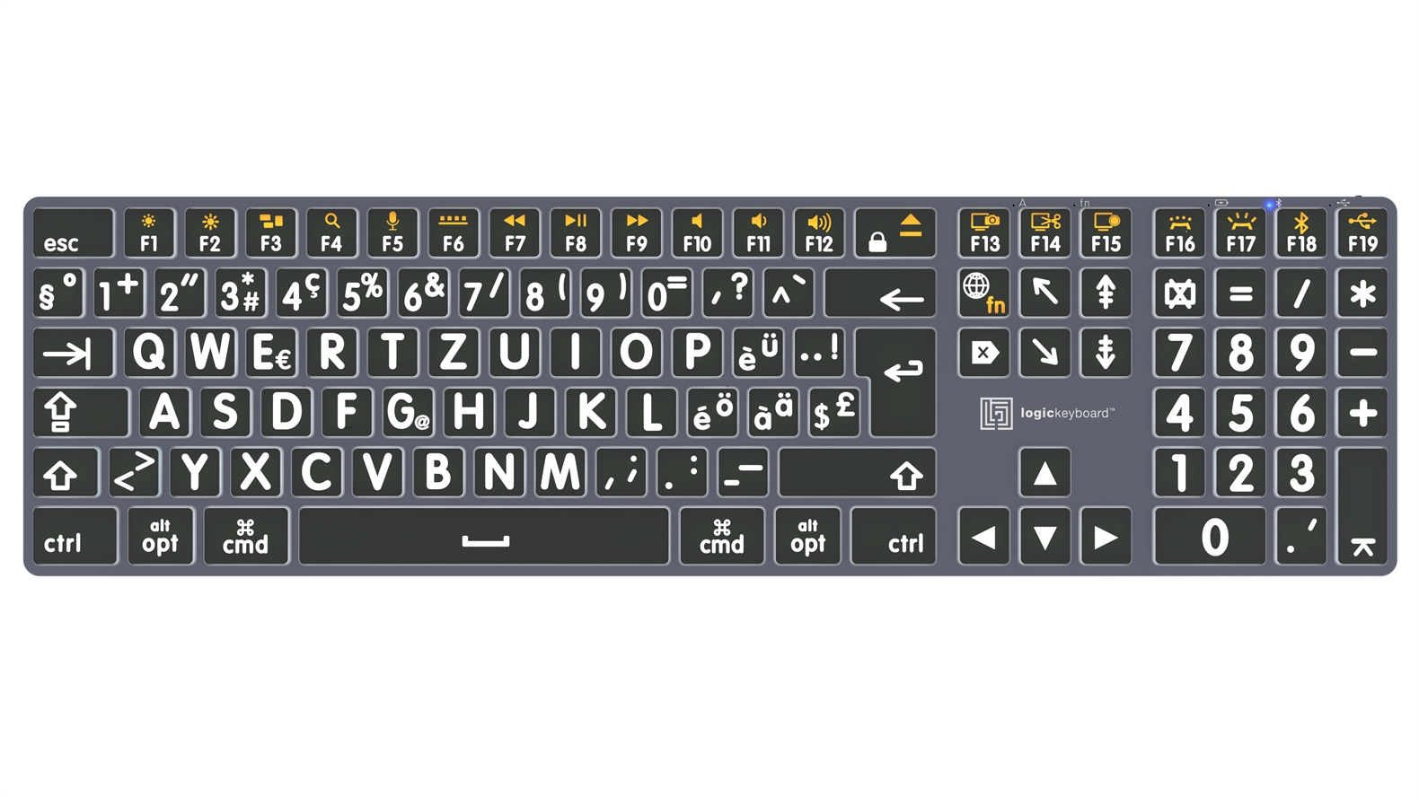 Logickeyboard Large Print - White on Black TITAN Slimline Keyboard – Mac CH Swiss