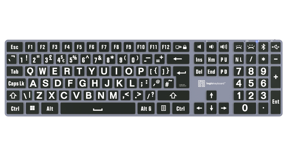 Wireless & Backlit Large Print Logickeyboard - White on Black