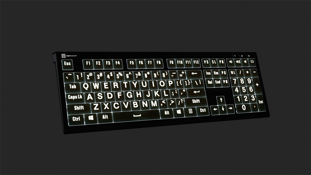 Backlit Large Print Logickeyboard - White on Black